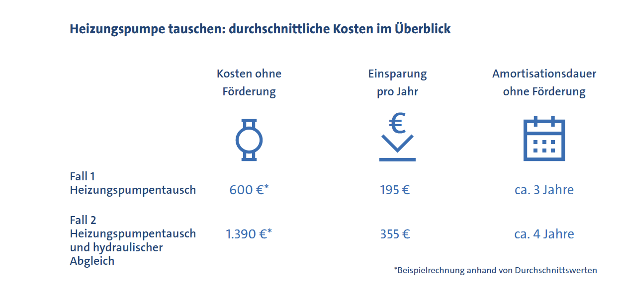 Energiekosten sparen Sie so jährlich bis zu 195,- Euro. Ihre Investition von etwa 600,- Euro* für Pumpe inklusive Montage amortisiert sich schon nach drei Jahren. Bei einer durchschnittlichen Lebensdauer von 15 Jahren kommen sogar 2.925,- Euro Ersparnis zusammen.